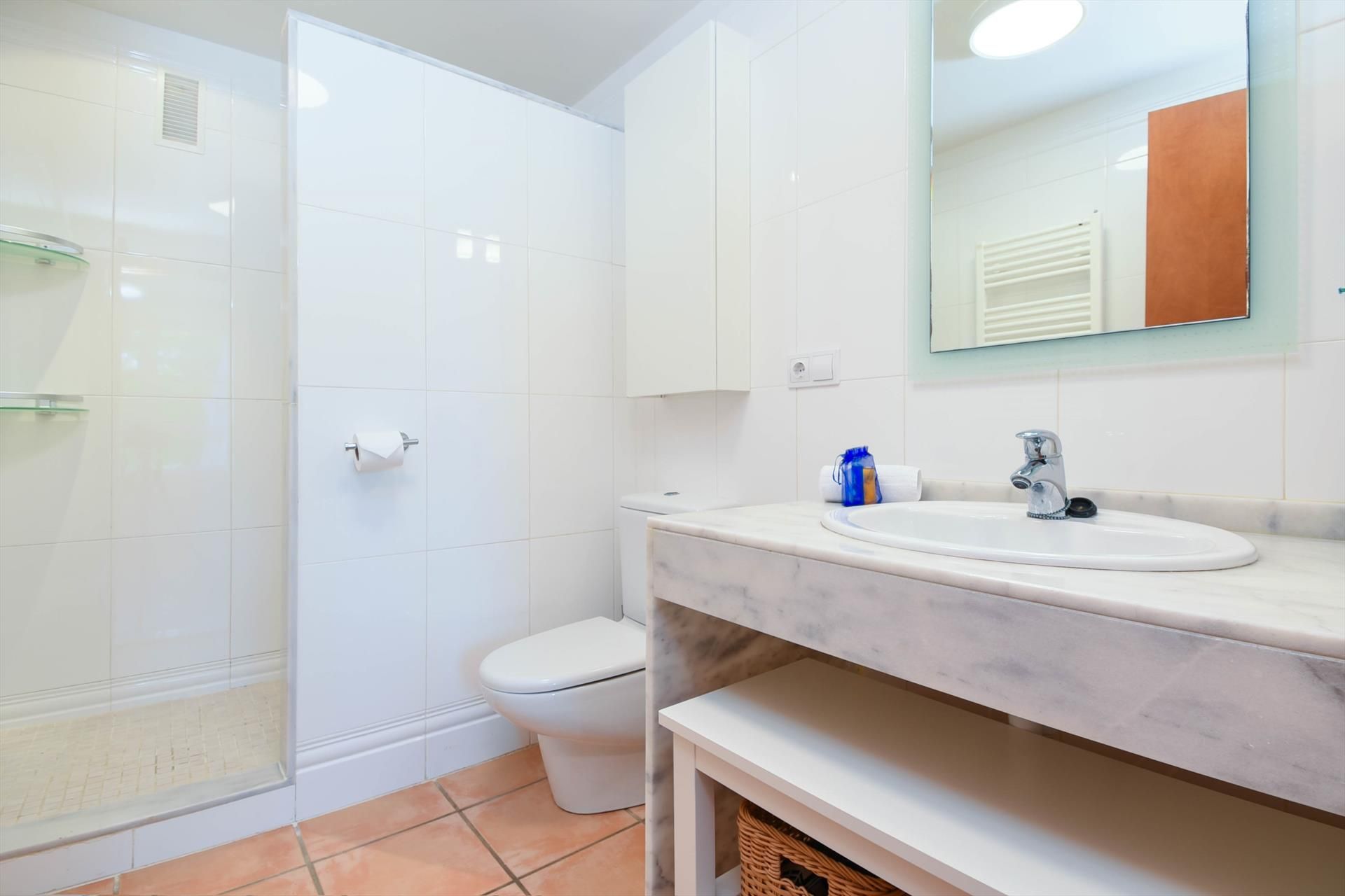 El apartamento cuenta con 2 dormitorios y 2 baños. El alojamiento ofrece privacidad, un jardín comunitario con césped y árboles, y bellas vistas a las montañas. Su comodidad y la cercanía a la playa, lugares de compras, actividades deportivas, instalaciones de entretenimiento, lugares para salir, atractivos turísticos y culturales, hacen de este un excelente apartamento para pasar sus vacaciones en España con familia o amigos.