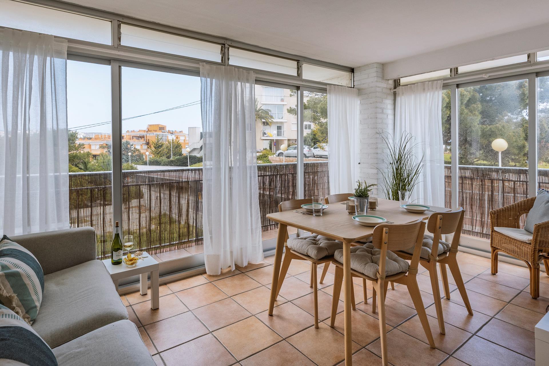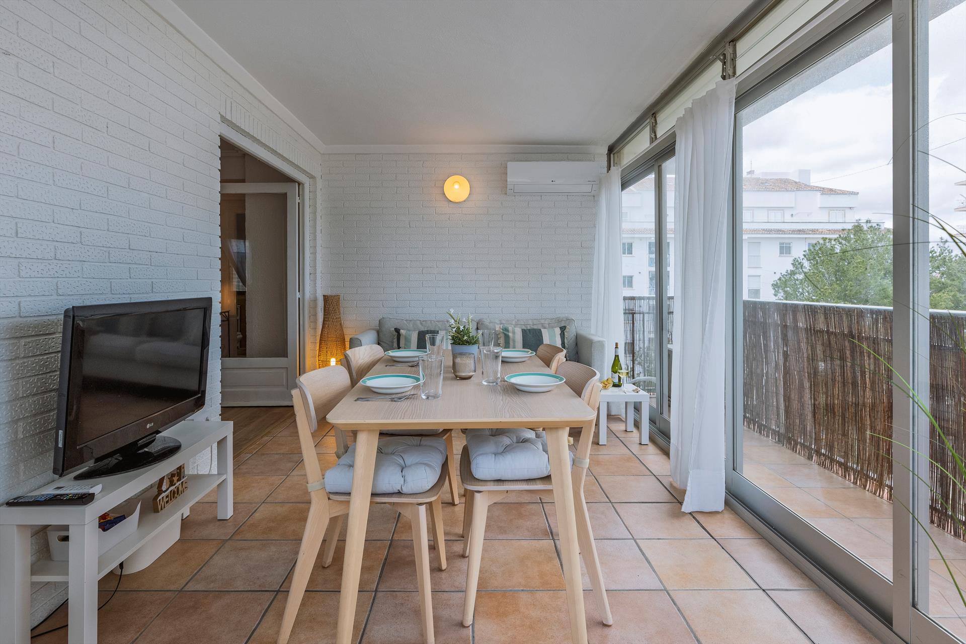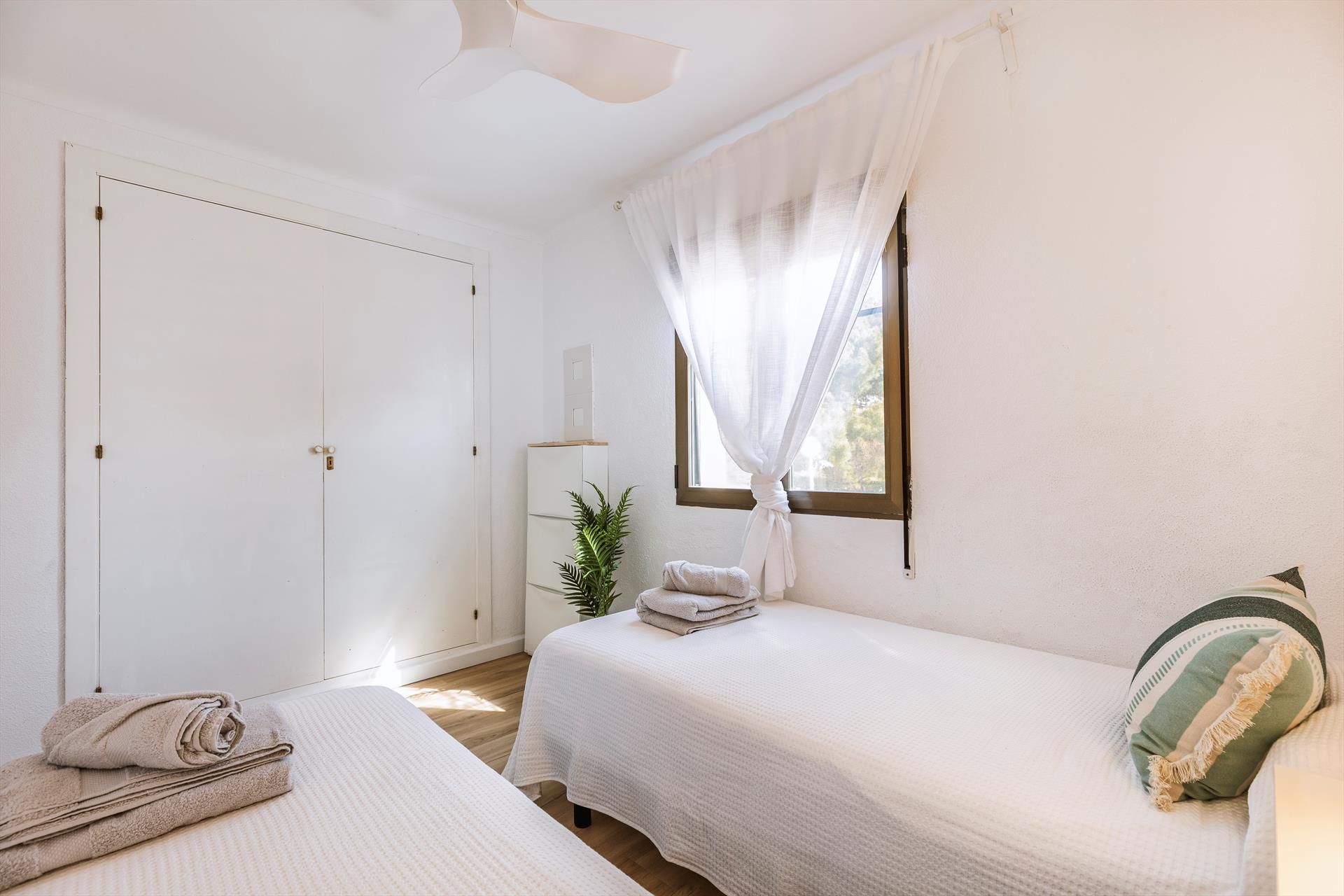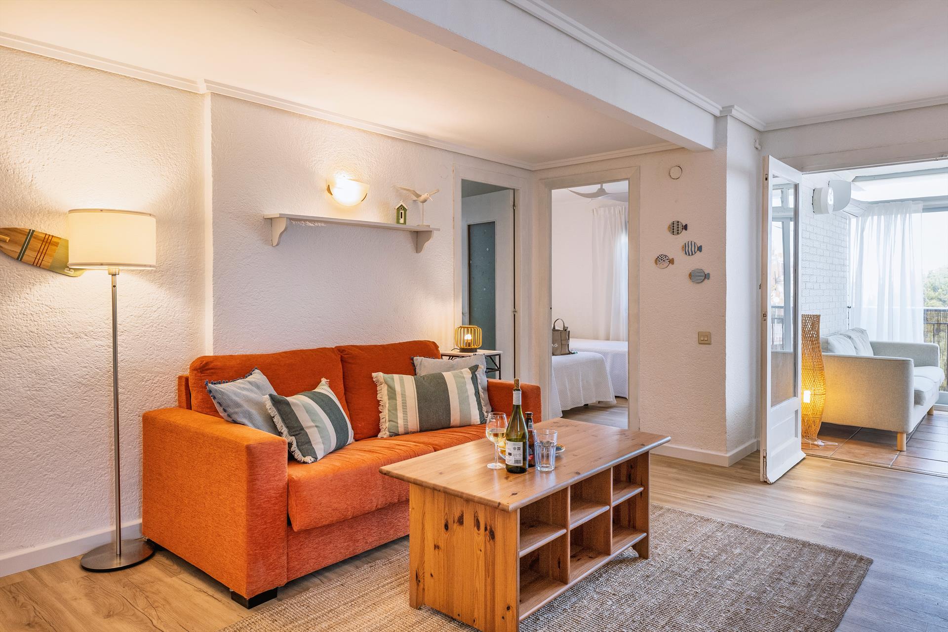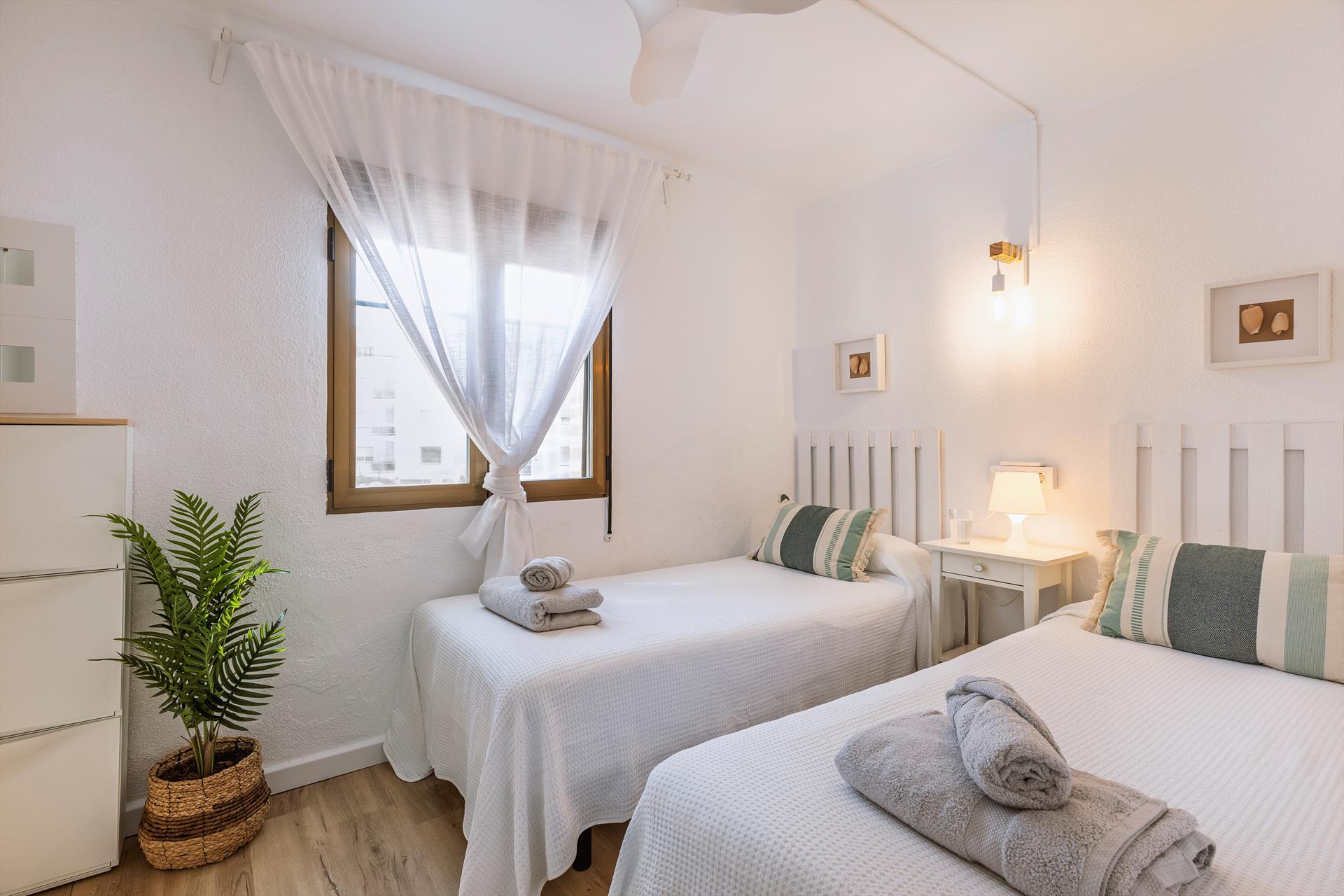 El apartamento cuenta con 2 habitaciones y 1 baño. La cercanía a la playa, lugares para ir de compras, actividades deportivas y lugares de entretenimiento hacen de este un excelente apartamento para pasar sus vacaciones en España con familia o amigos.