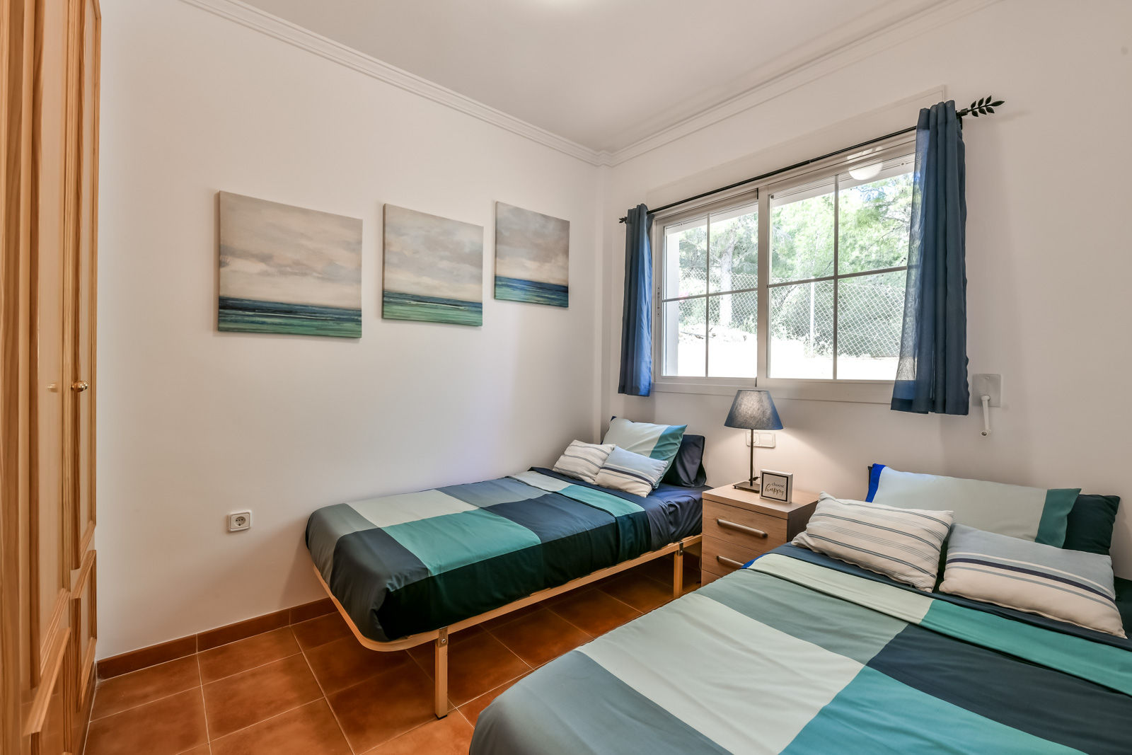 Das Ferienhaus verfügt über 3 Schlafzimmer, 2 Badezimmer und 1 Gästetoilette, verteilt auf 3 Ebenen. Die Unterkunft bietet einen mit Rasen gestalteten Garten, einen gemeinschaftlichen Garten mit Rasen und wunderbare Ausblicke auf das Meer, das Tal und andere Gebäude. Sein Komfort und die Nähe zum Strand sowie zu Sportaktivitäten machen dieses Ferienhaus zu einem idealen Ort, um Ihren Urlaub in Spanien mit Familie oder Freunden zu verbringen.