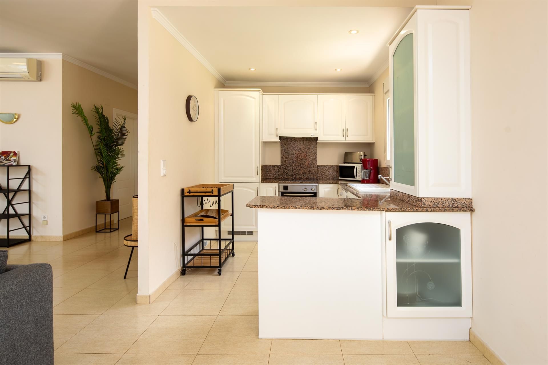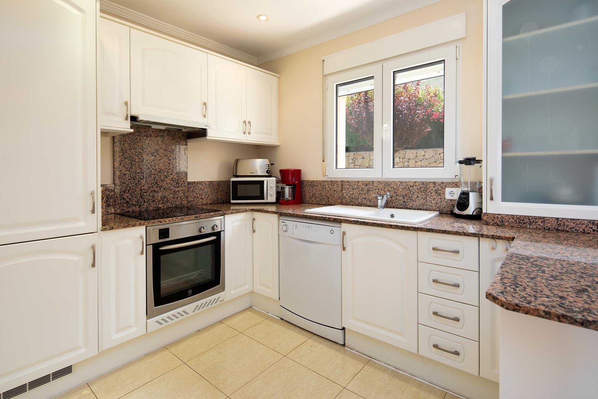 Innenausttatung: Kühlschrank, Herd und Backofen/oder Elektrogrill, Kaffeemaschine, Toaster, Wasserkocher, Bügeleisen und Bügelbrett, Pürierstab.