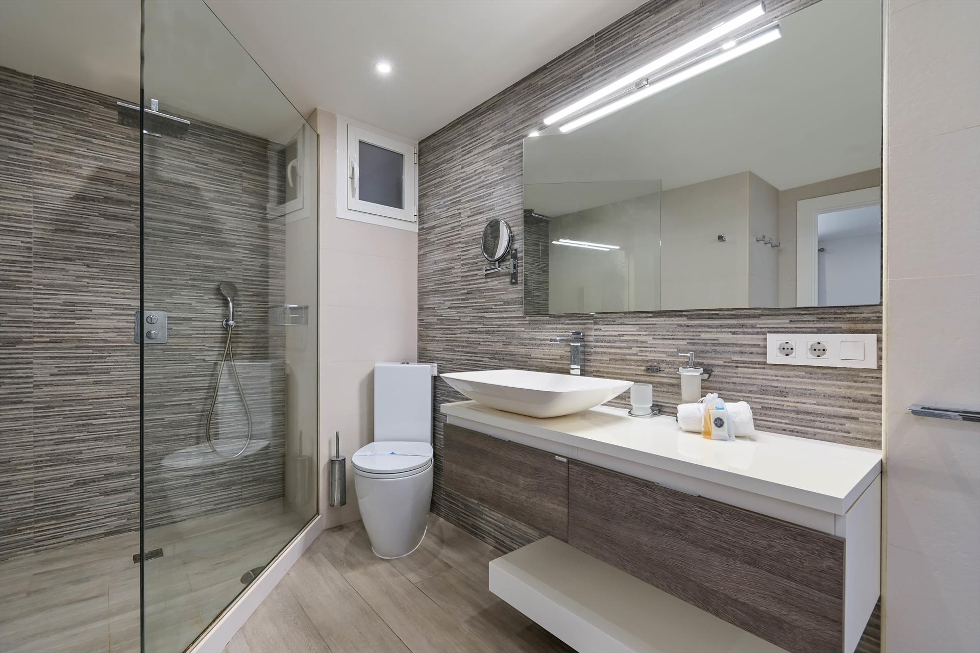 • eigenes Badezimmer mit Einzelwaschbecken, Dusche und Toilette