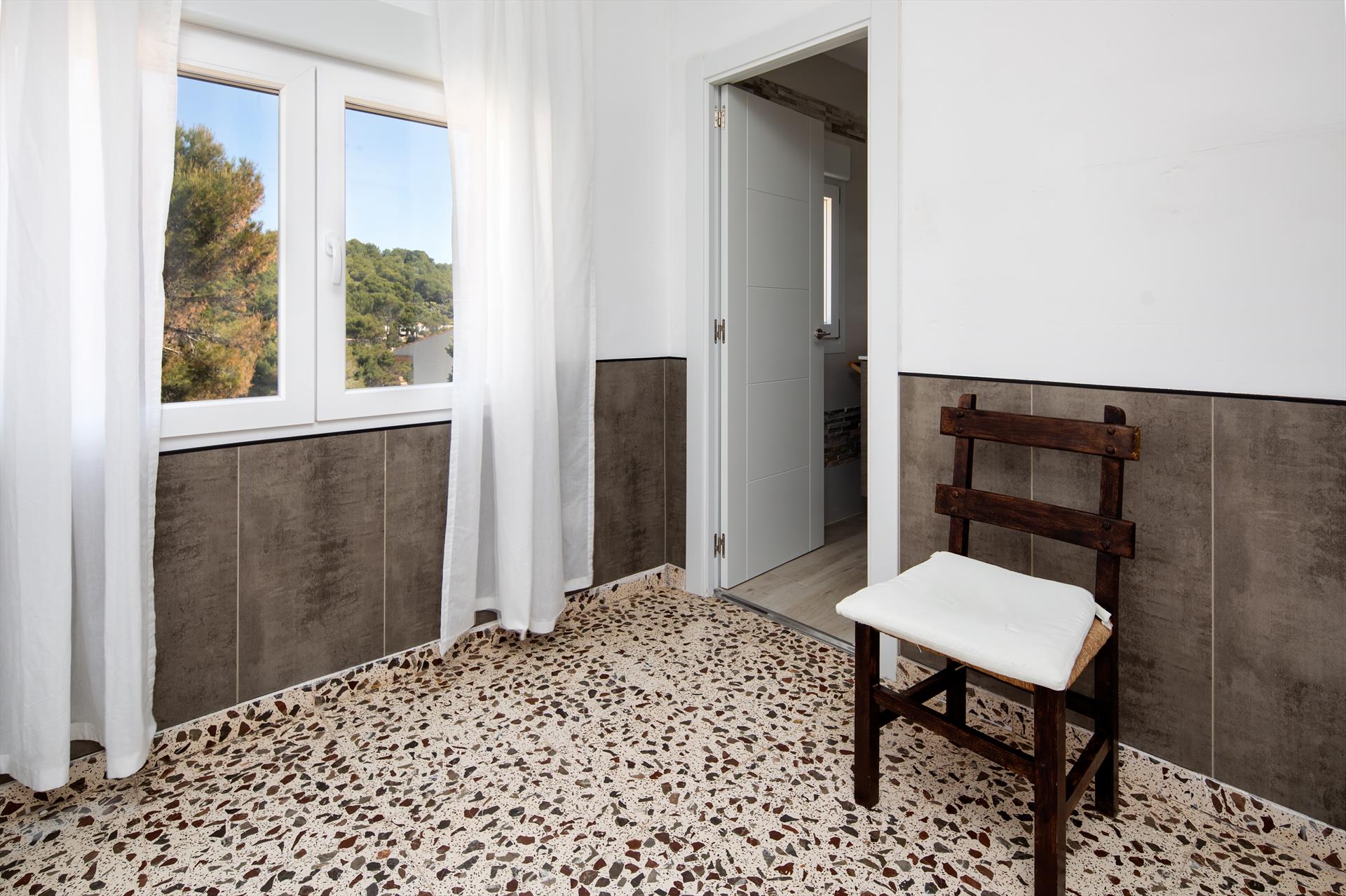 Das Ferienhaus selbst ist ein älteres Gebäude, bestehend aus 2 Etagen, und im rustikalen und typisch spanischen Stil ausgestattet. Die Badezimmer sind vor Kurzem renoviert worden. Casa Luna bietet jedoch auch moderne Einrichtungen, wie Satelliten-TV, Internet-Anschluss, Geschirrspülmaschine, etc. Viele verschiedene Terrassen, teilweise überdacht oder mit schattenspendenden Markisen ausgestattet, laden zum Ausruhen oder im Freien Essen ein. Dieser kleine Fleck ist mit schattenspendenden Pinien bewachsen und bietet eine traumhafte Aussicht auf das Meer, die Bucht und die Insel von Porticholl und auf das Strandtreiben.