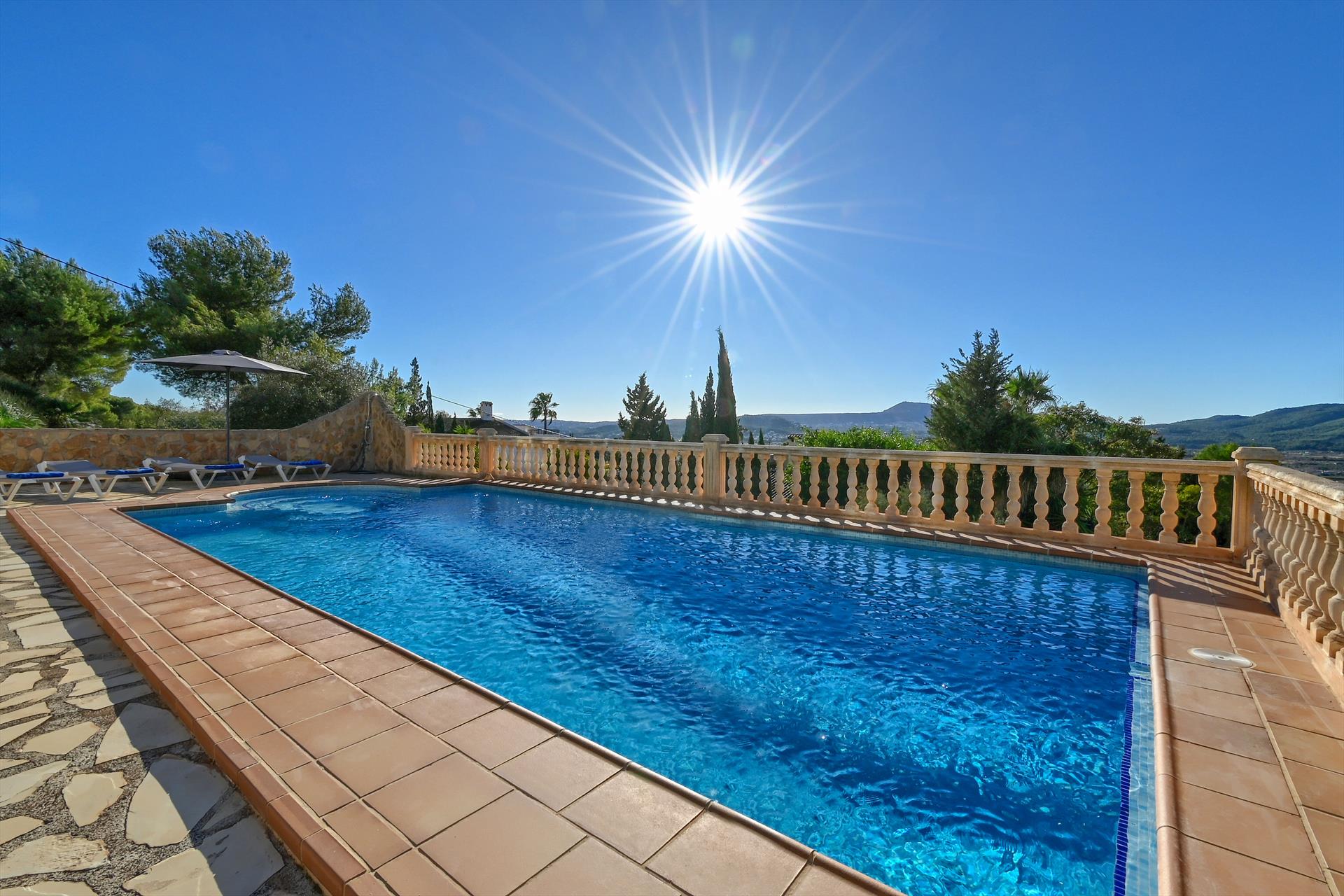 Das Haus verfügt über 2 Schlafzimmer und 1 Badezimmer. Die Unterkunft bietet Privatsphäre, einen wunderschönen Rasen mit Bäumen, einen schönen Pool, herrliche Ausblicke auf das Tal und die Berge. Die Nähe zum Strand, zu Einkaufsmöglichkeiten und Ausgehmöglichkeiten macht diese Villa zu einem hervorragenden Ort, um Ihren Urlaub in Spanien mit Familie oder Freunden zu verbringen.