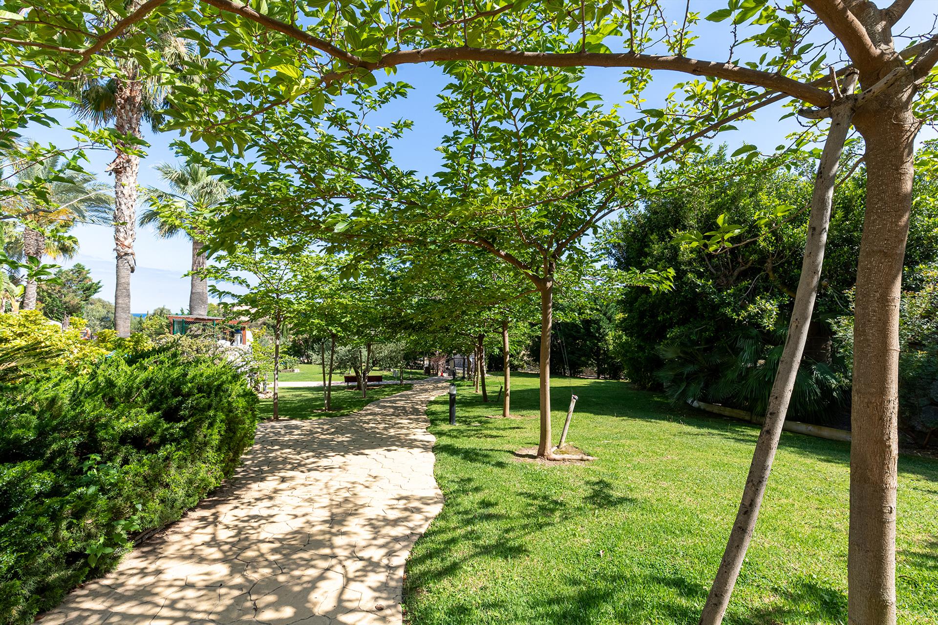 • beautiful lawned garden with garden furniture and sunbeds