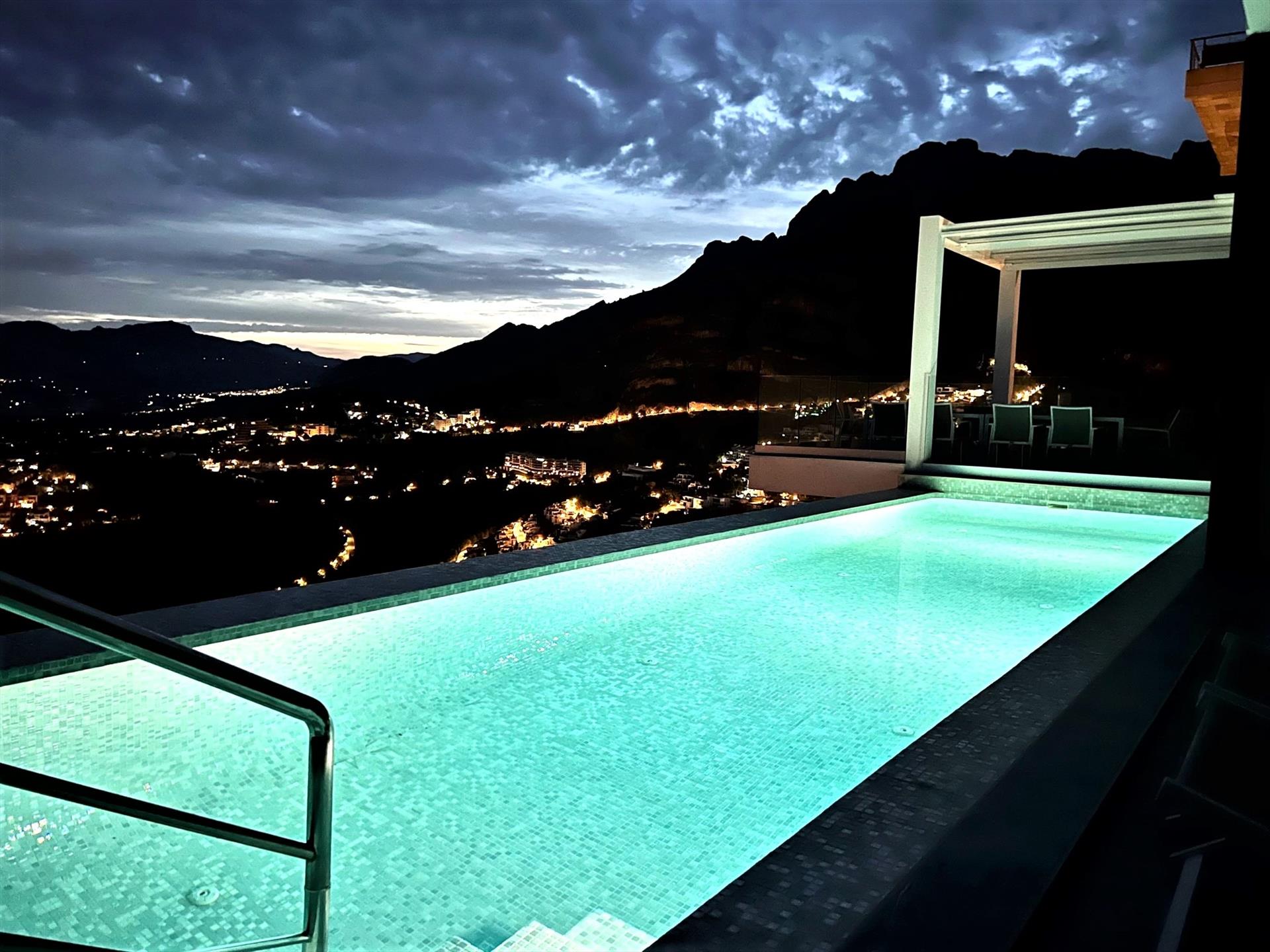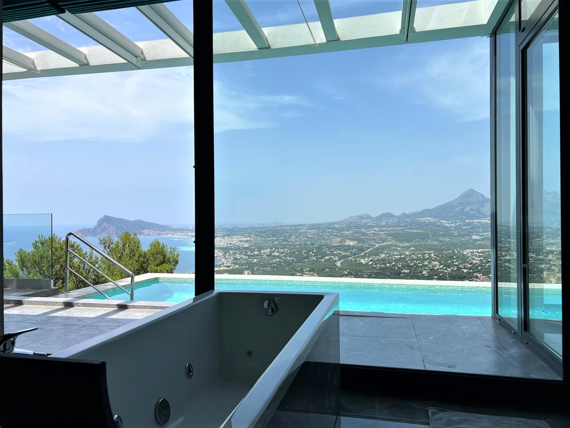 Modern and luxurious holiday house in Altea, Costa Blanca, Spain with heated pool for 8 persons. The house is situated in a coastal, residential and mountainous area.