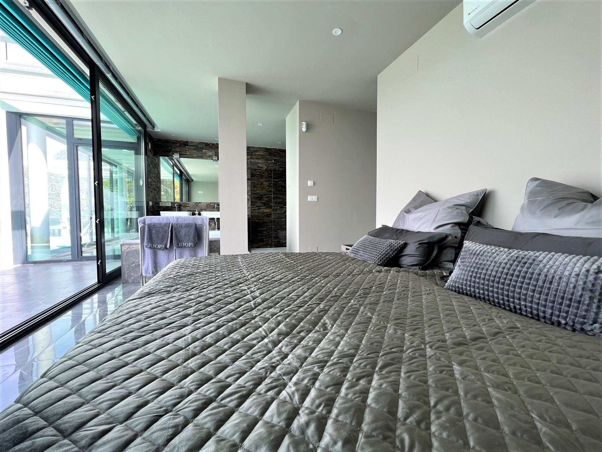 • bedroom with air conditioning, king size bed and en-suite bathroom