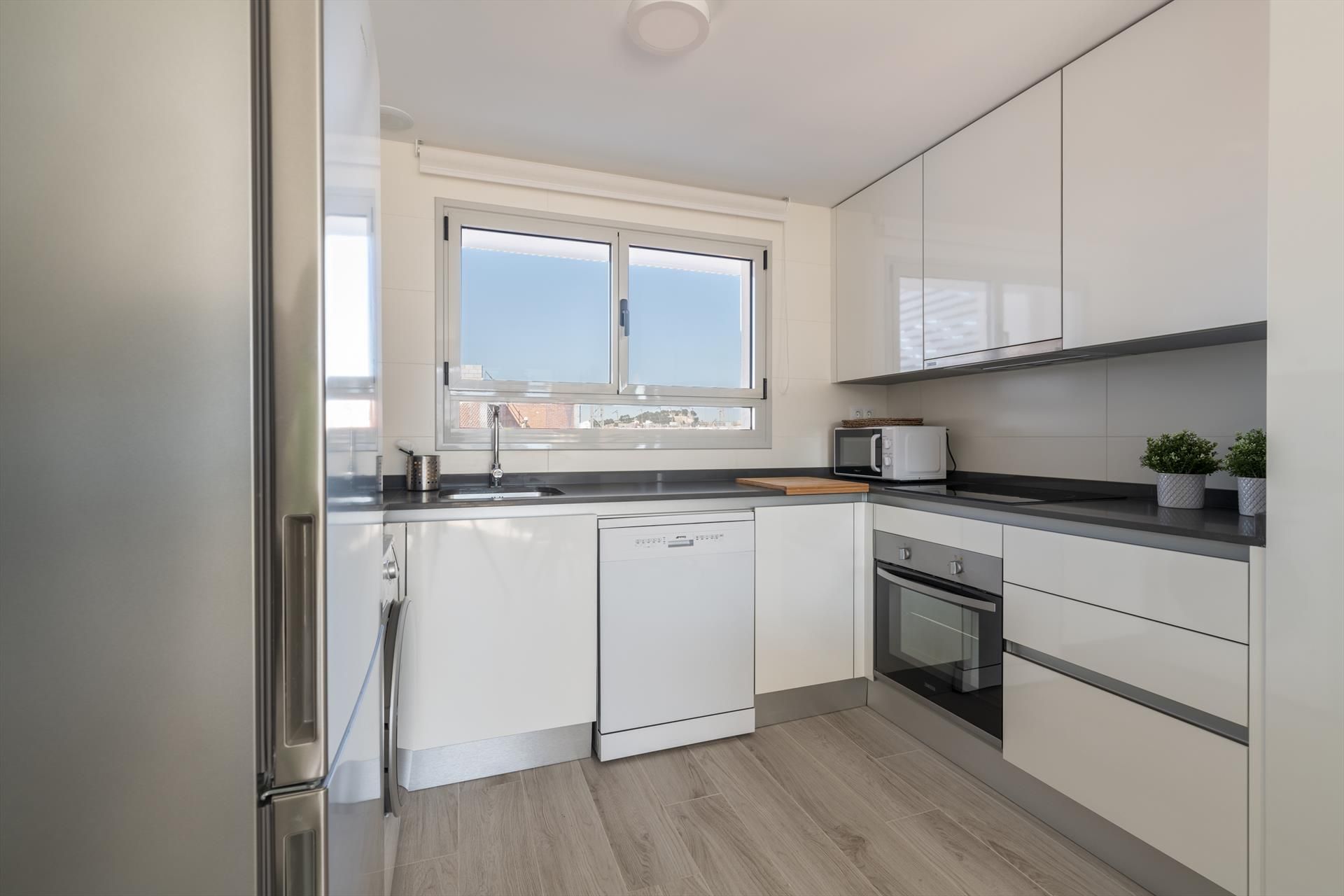 The apartment is located on a third floor, accessible by direct elevator from the underground parking. The large private terrace of the apartment has excellent views of the community pool and the Montgó mountain. The apartment is very well furnished, with a dining room for 4 people, 2 sun loungers and a small relaxing corner with sofa and outdoor table. An ideal place to enjoy a good breakfast or dinner. It has an open kitchen perfectly equipped and very modern. The apartment is perfect for families and couples.