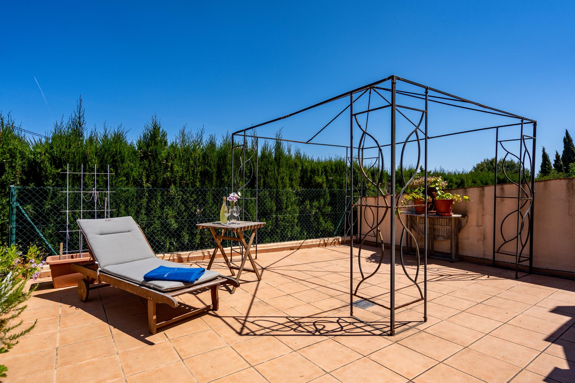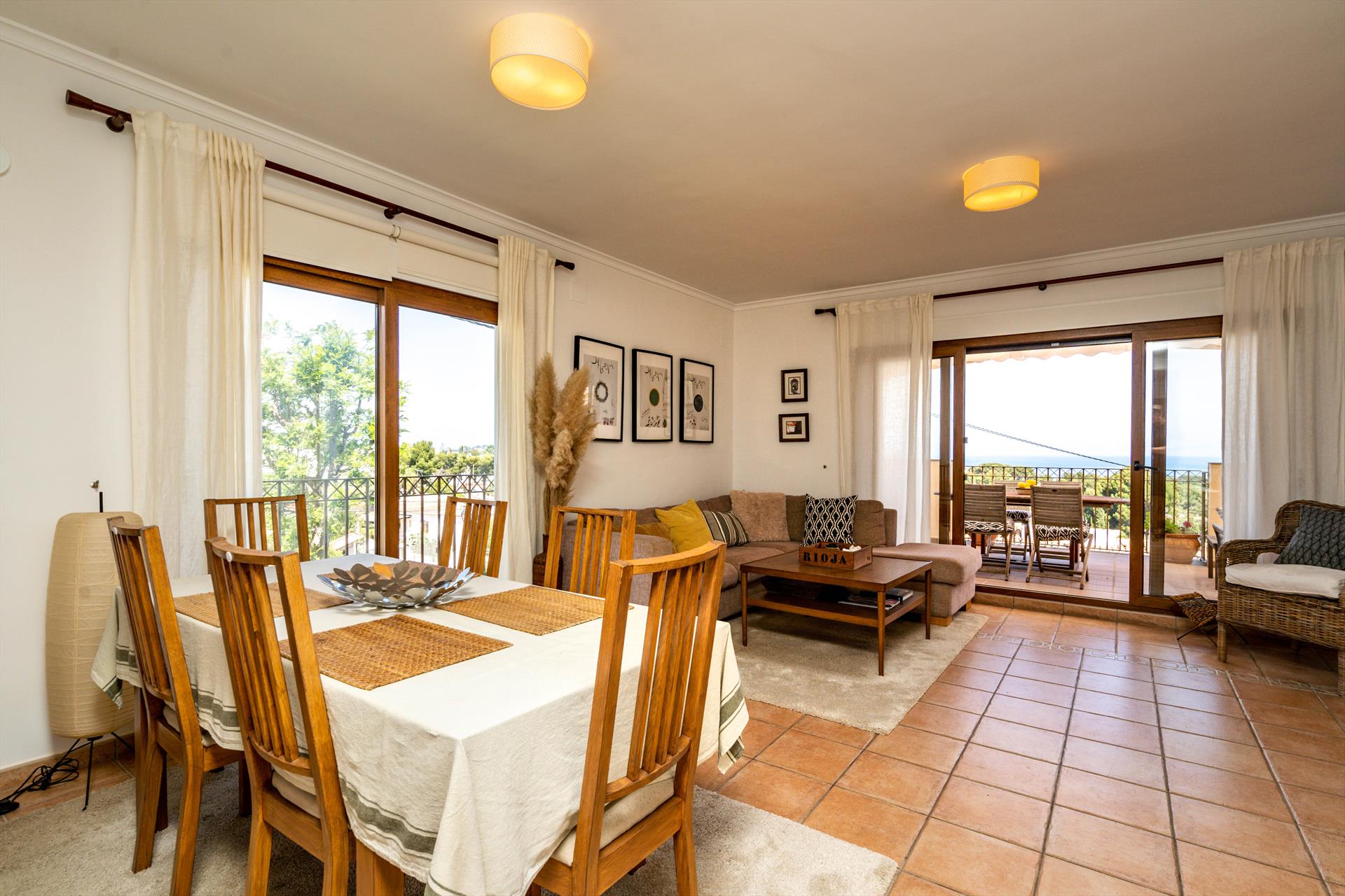 • Living / dining room with air conditioning, fireplace, TV and access to the upper terrace