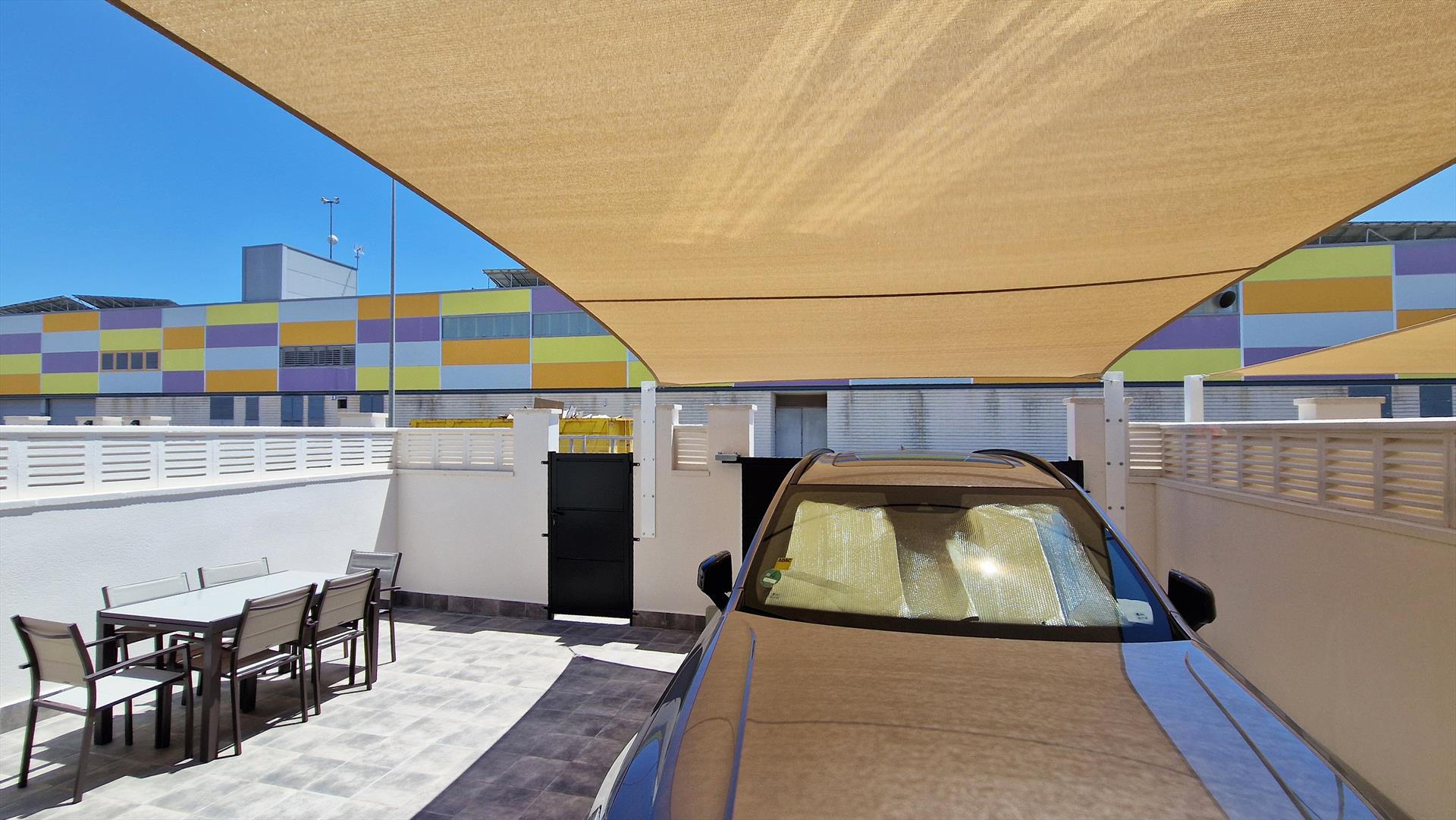 • private parking closed for one car and shade sail