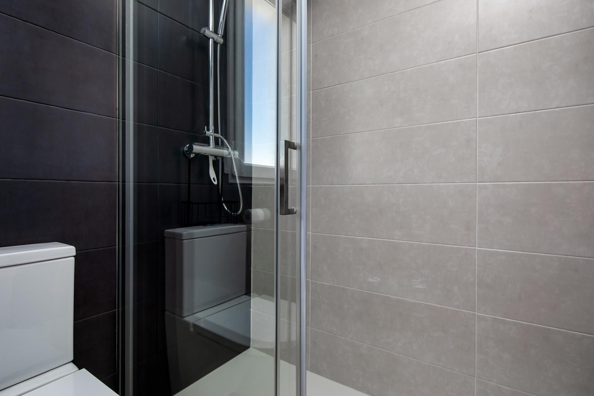 • ensuite bathroom with single washbasin, shower, toilet