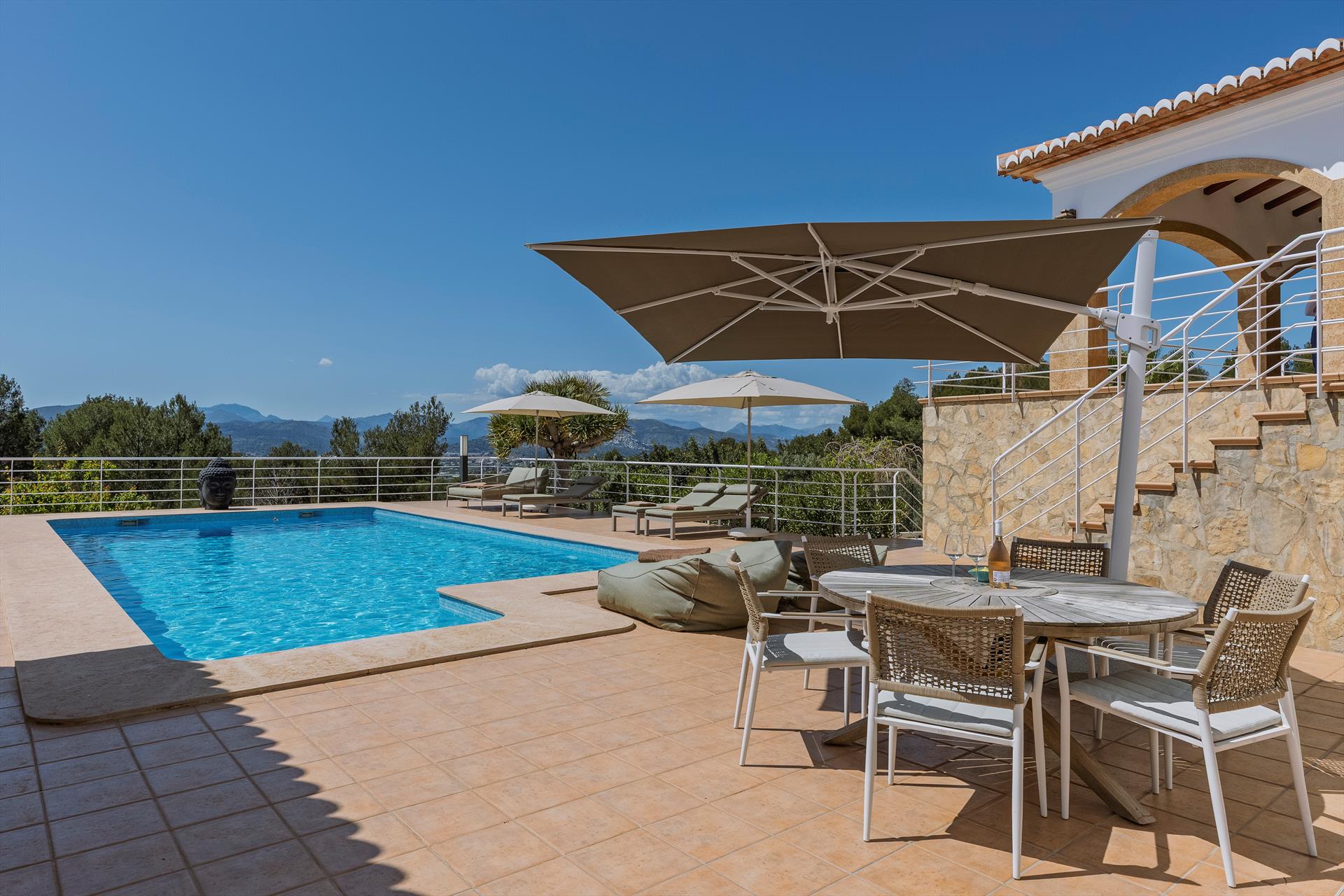 Beautiful and luxurious villa in Javea, Costa Blanca, Spain, with a private pool for 10 persons. The villa is situated in a mountainous area.