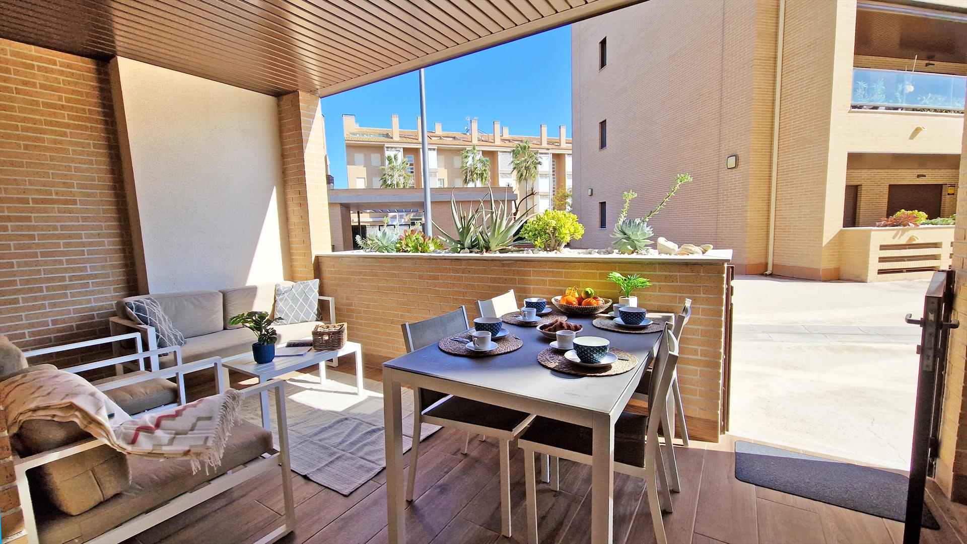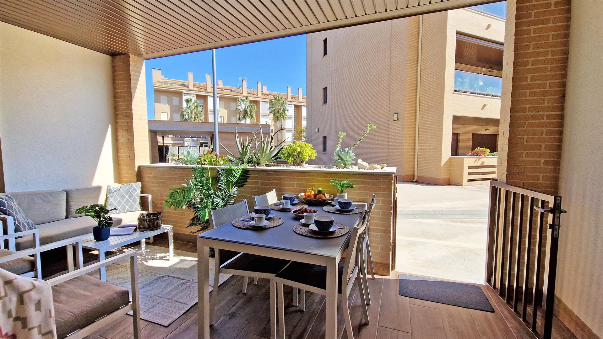 Extérieur : Salon de jardin et transats (pas nécessairement disponibles dans les appartements et maisons de ville)