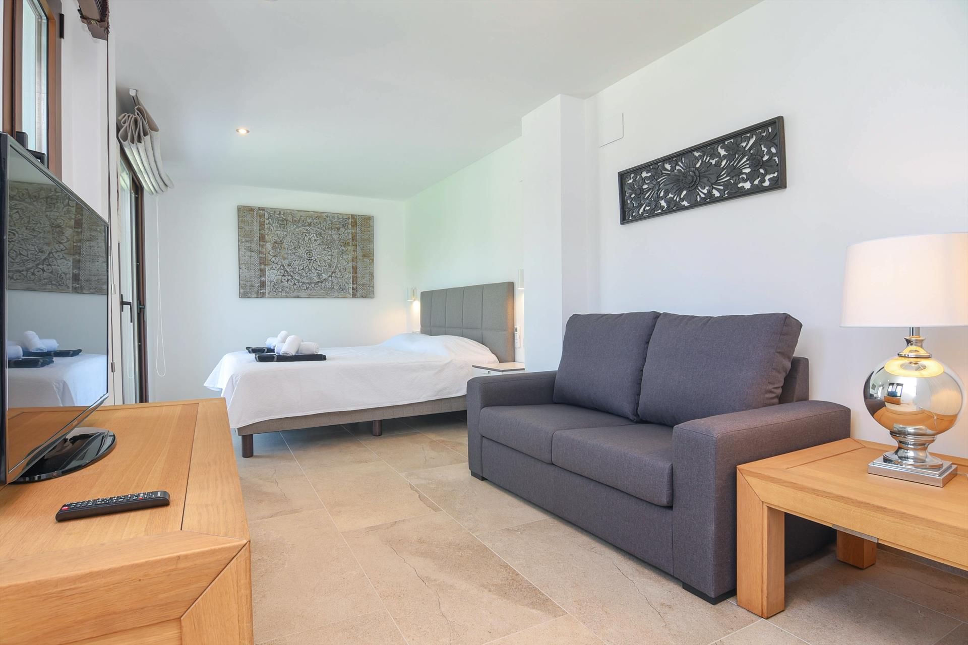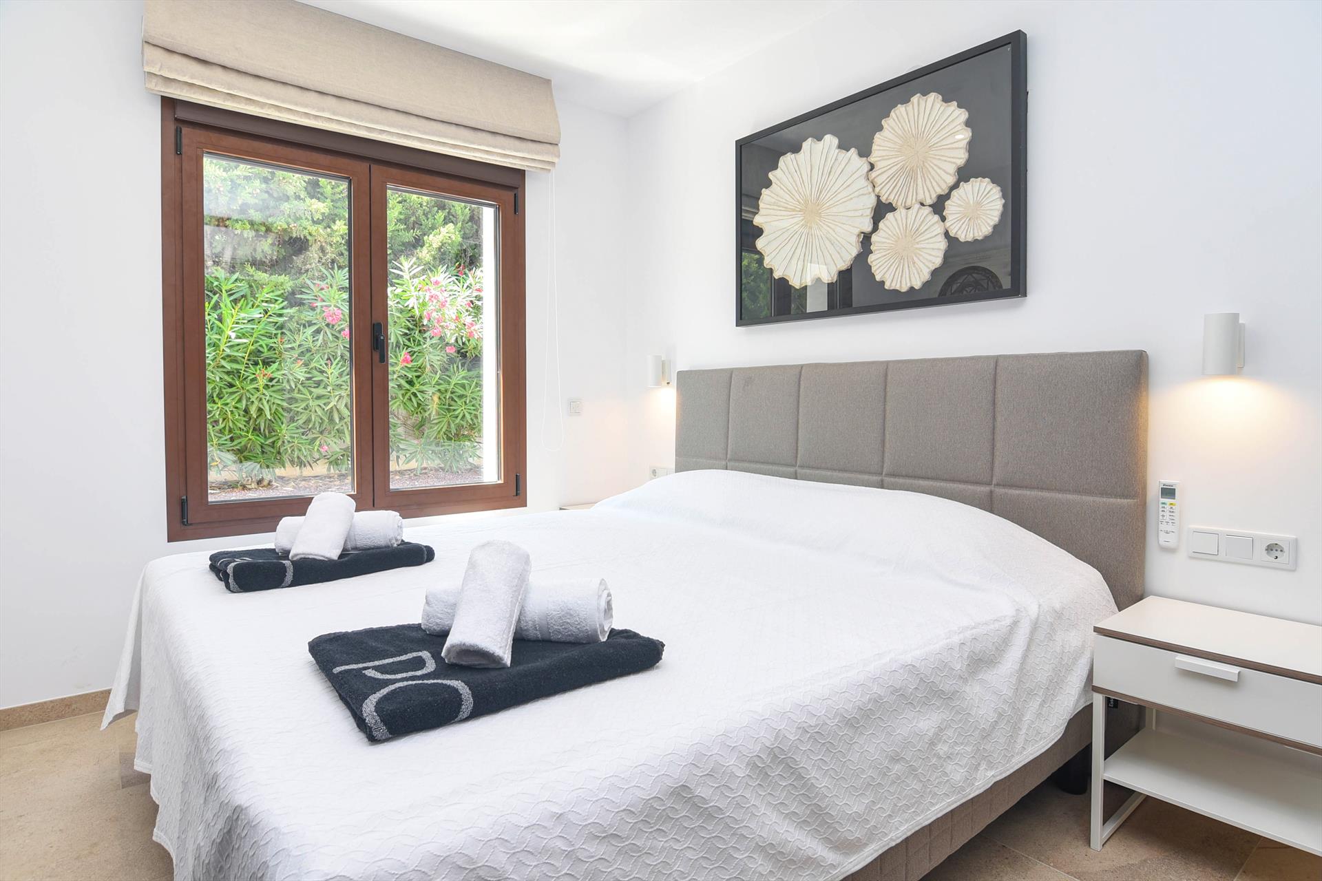 • 2 chambres avec climatisation, chacune avec lit king-size (mesurant 200 par 180 cm) et salle de bains en suite