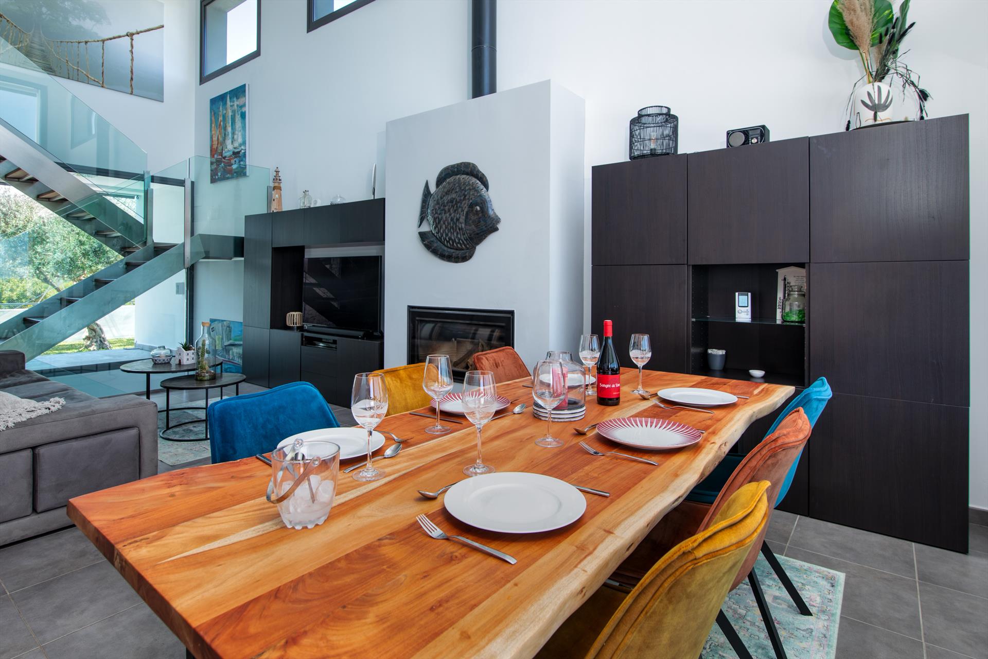 De grote, mediterraan aangelegde tuin en het privézwembad, maar ook het overdekte terras met eethoek en grote gasbarbecue vormen de ideale sfeer voor een ontspannen vakantie met familie en vrienden. Het huis heeft 2 verdiepingen, met een moderne keuken, woonkamer en een vleugel met 3 slaapkamers op de begane grond. Op de bovenverdieping bevindt zich nog een slaapkamer, evenals een Slaapkamer met tweepersoonsbed met extra tv en een grote slaapbank.