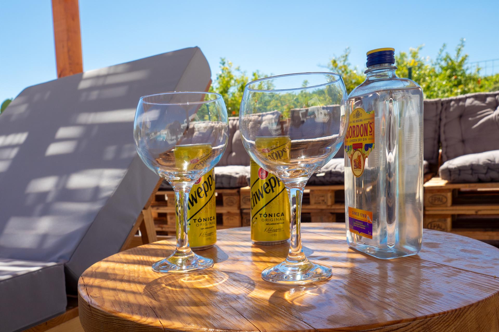 • Pergola met ligstoelen