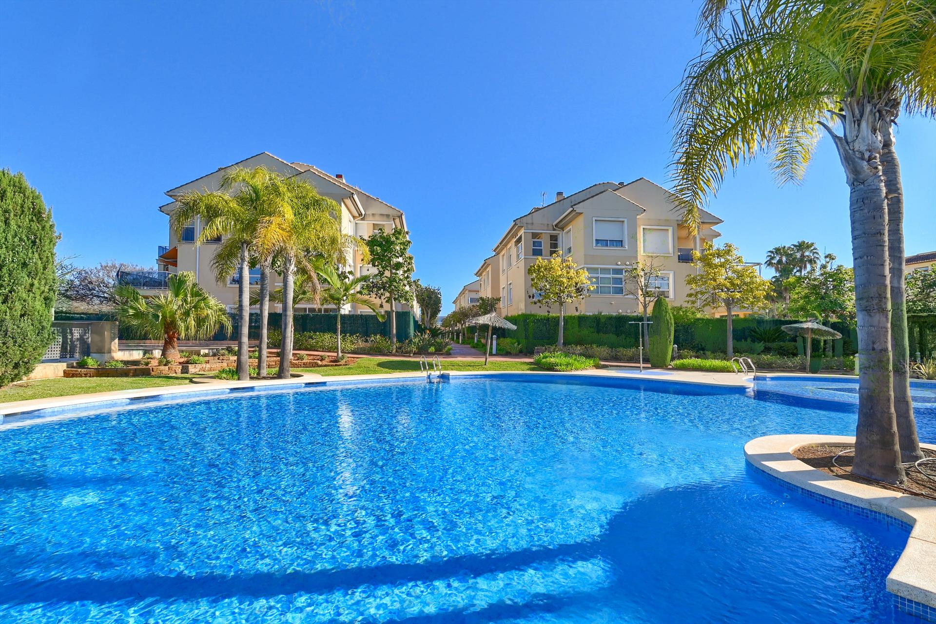 Een prachtig en comfortabel appartement in Xàbia, Costa Blanca, Spanje met een gemeenschappelijk zwembad voor 5 personen. Het appartement is gelegen in een residentiële strandwijk, dicht bij restaurants en bars, winkels, supermarkten en een tennisbaan, op 1 km van het Arenal-strand en 1 km van de Middellandse Zee.