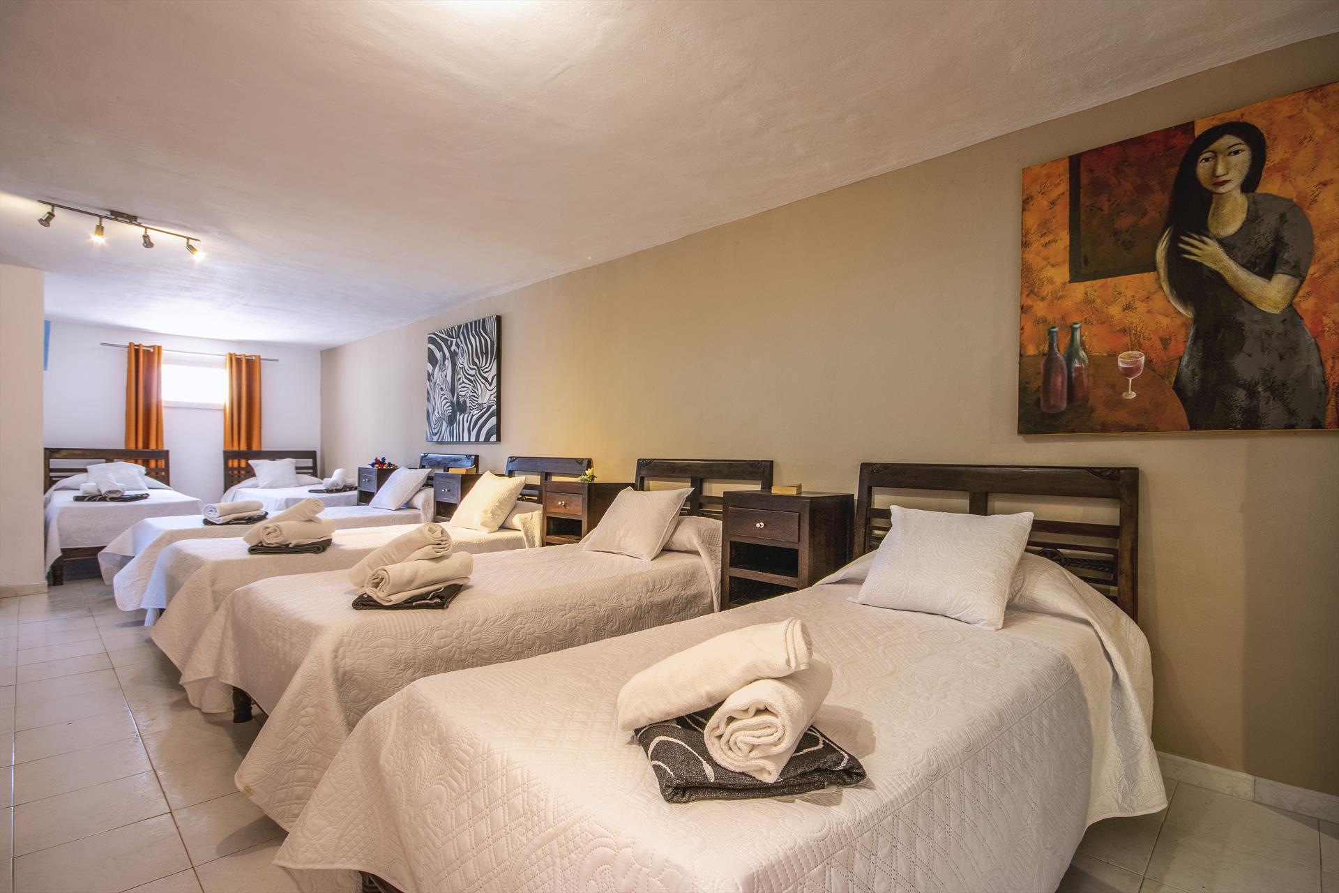 • 2 slaapkamers met airconditioning, elk met 4 eenpersoonsbedden (200 bij 90 cm)
